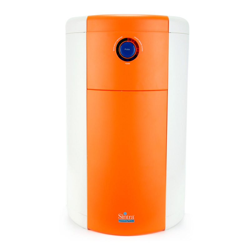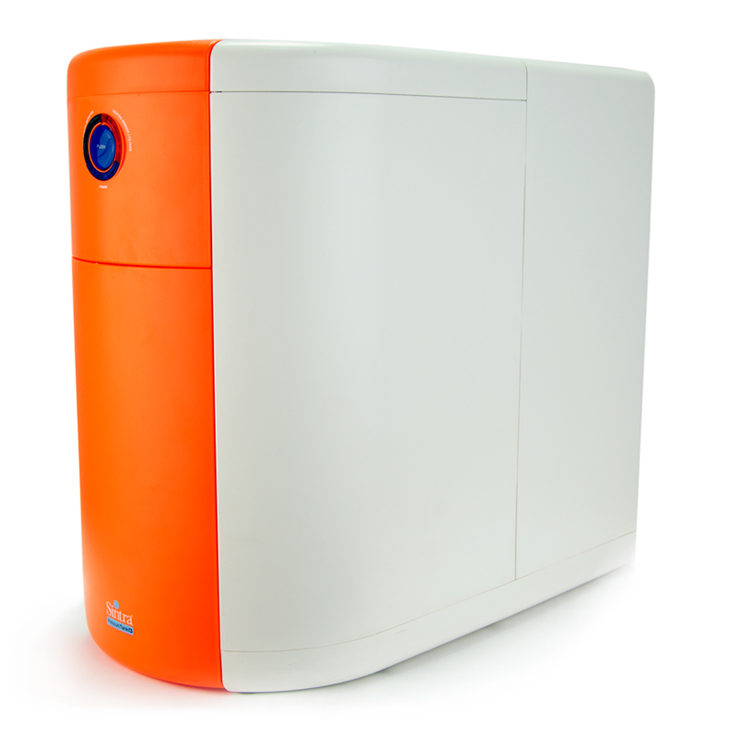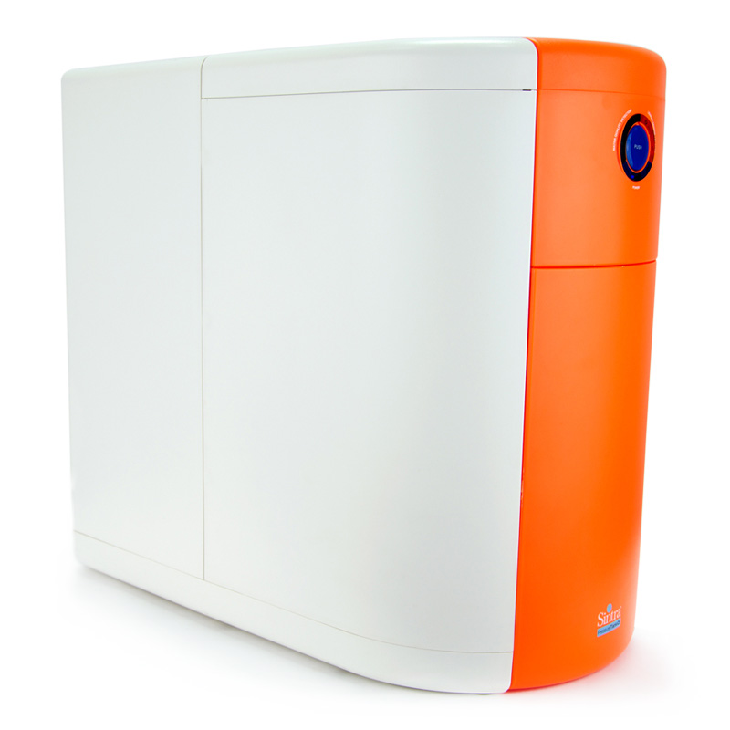 Puricom Sintra to filtr odwróconej osmozy, który na pierwszy rzut oka wyróżnia się jakością i dbałością wykonania. Urządzenie ma wbudowany zbiornik, w którym magazynowana jest woda filtrowana. Wszystko zamknięte jest w jednej, szczelnej obudowie. Pomarańczowy kolor i owalny kształt sprawiają, że filtr doskonale prezentuje się nawet w nowoczesnych pomieszczeniach.